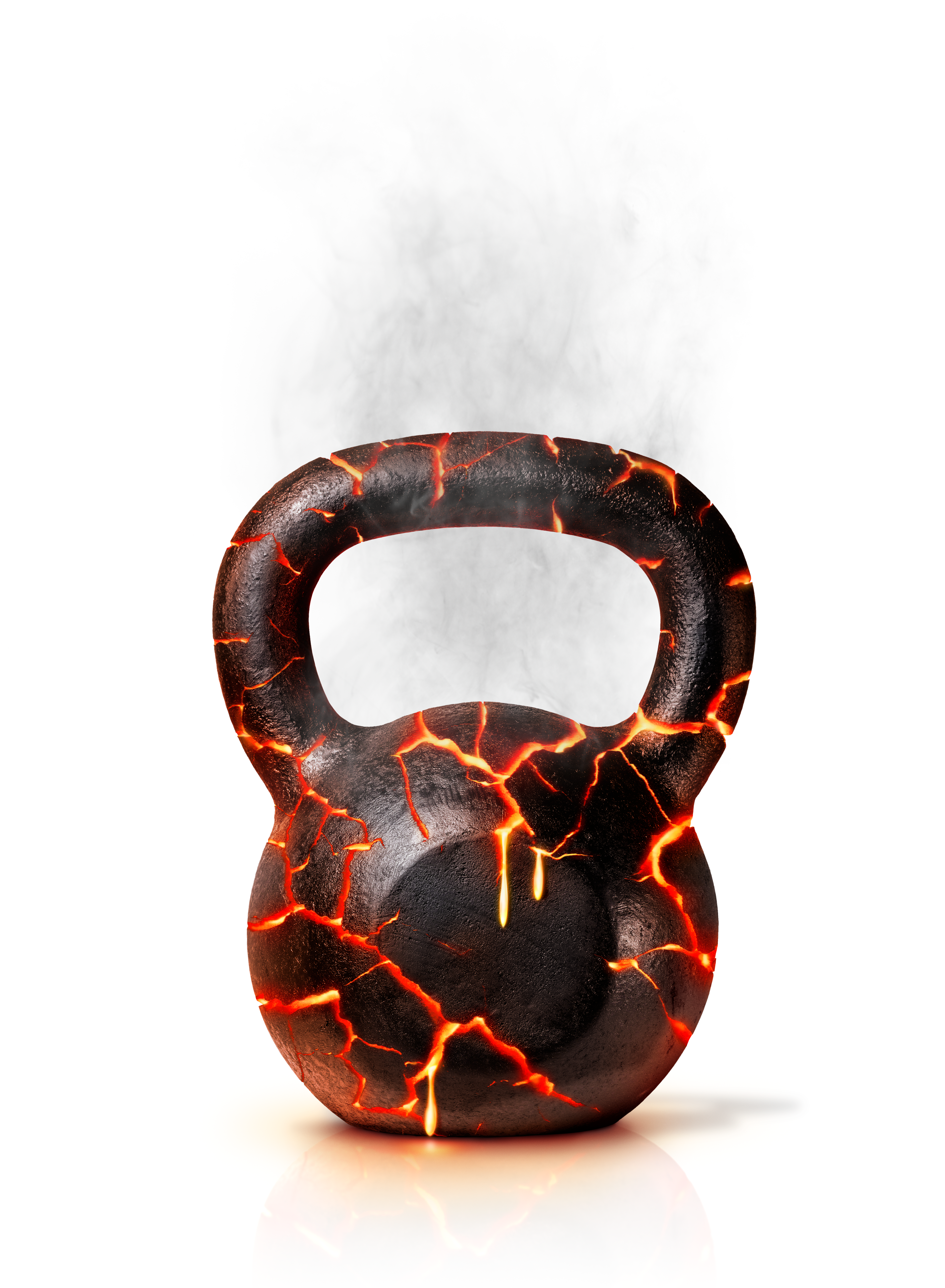 The brief was to make the kettlebell look as if it was hot and cracking form the inside with molten lava. Adding glows and smoke.